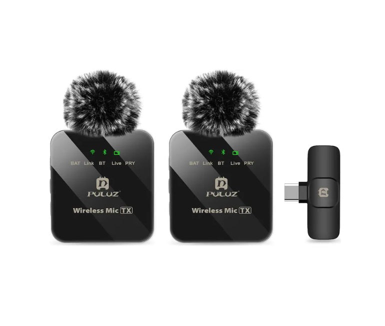 Perfekt für Interviews, Meetings oder Vlogs! Das Puluz Dual-Lavalier Mikrofon mit USB-C bietet exzellenten Klang für Smartphones, Tablets und Laptops. Zwei Mikrofone für klare Gespräche!