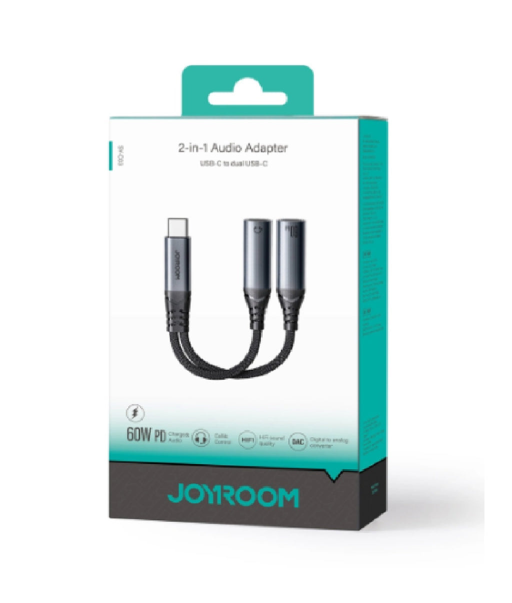 Joyroom 2-in-1 USB-C Audioadapter – Dual USB-C Anschlüsse (SY-C03)Audio genießen und gleichzeitig laden: Mit zwei USB-C Ports ermöglicht dieser Adapter effiziente Nutzung deines USB-C-Geräts – ideal für moderne Smartphones und Tablets.