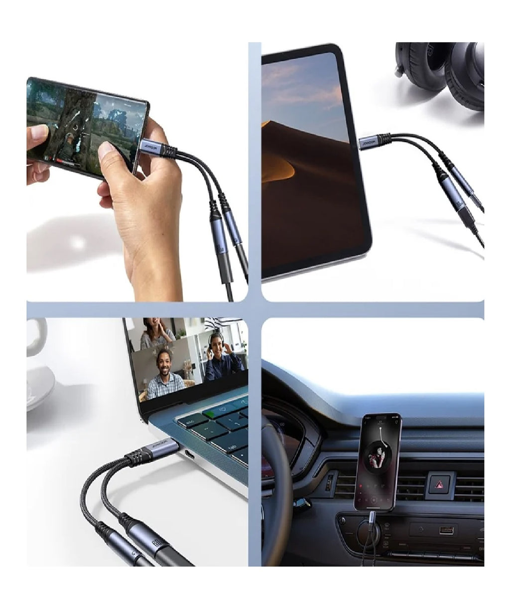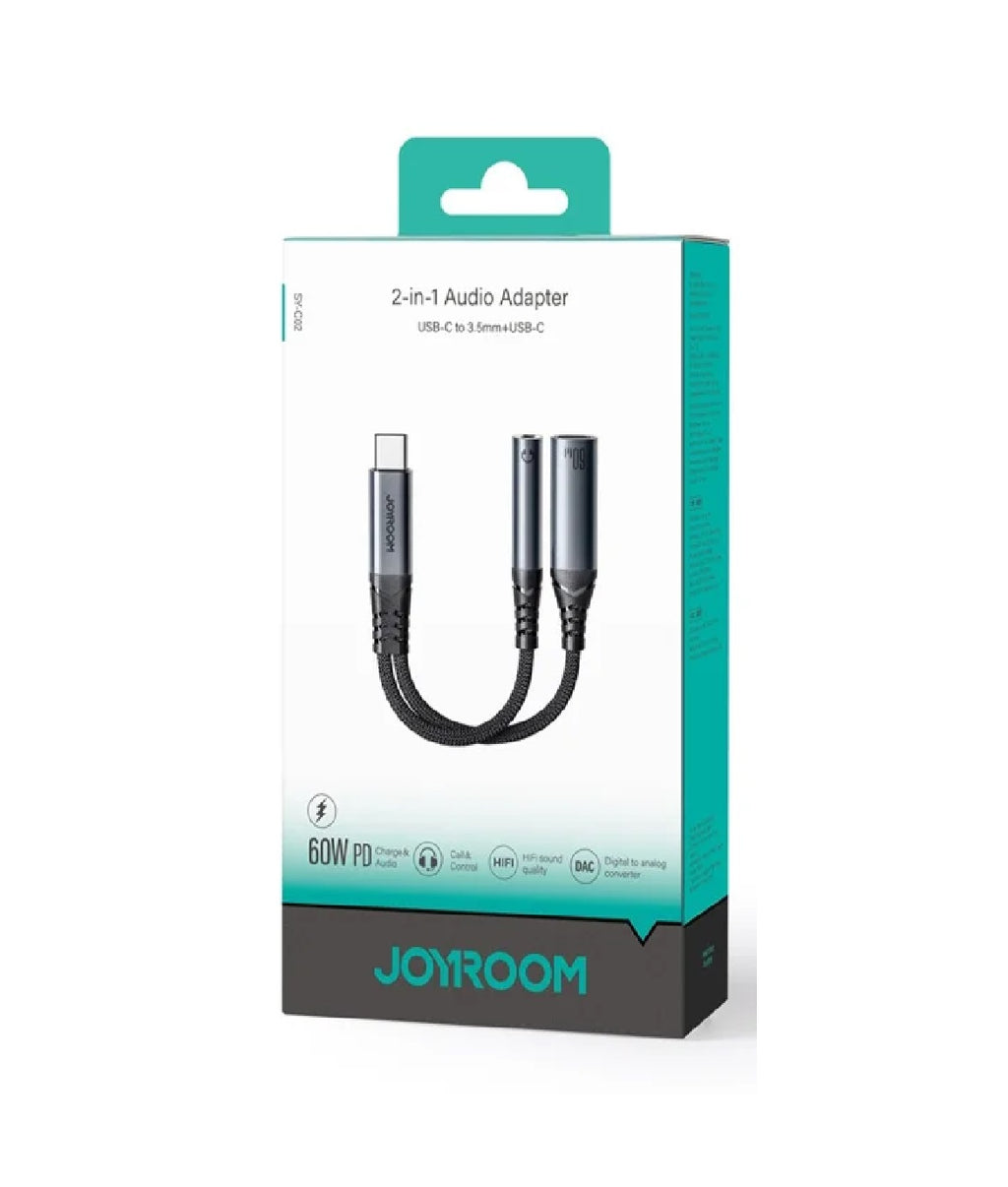 Joyroom USB-C auf USB-C + 3.5mm Audioadapter (SY-C02)Dieser Adapter kombiniert USB-C-Laden mit einem 3.5mm Audioausgang – ideal für Geräte ohne Kopfhörerbuchse. Musik hören und gleichzeitig laden leicht gemacht.
