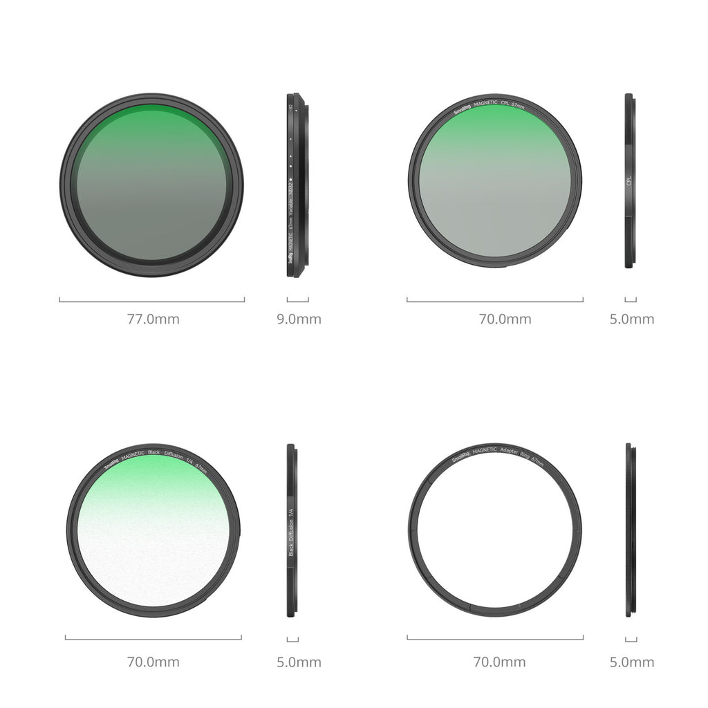 SmallRig 5-in-1 Filterkit 67mm mit Black MistFünf Filter in einem Set – inklusive Black Mist für stimmungsvolle Effekte direkt vor der Linse.